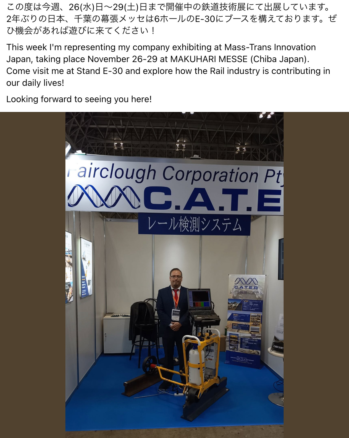彼は鉄道の検査をする会社に勤めています。今回幕張メッセで行われている「鉄道技術展」に出展するために来日したわけです。