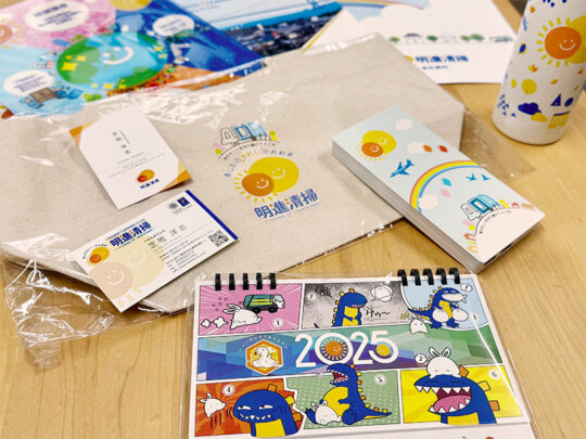 明進清掃さまはロゴマークが持つ世界観を大切にしたデザインで様々なアイテムを展開させ、ブランディングを充実させました。