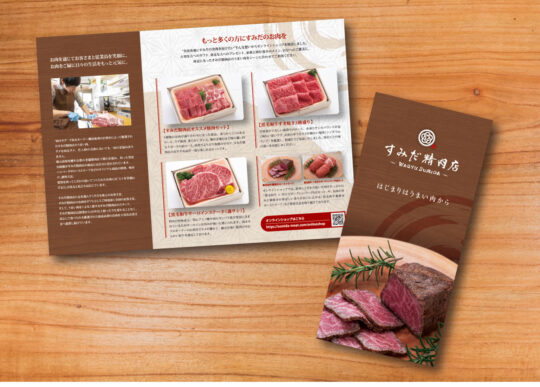 “肉 オタク”といったお持ちの異名やお肉へのこだわりの強さ、信頼性をリーフレットから表現しました。