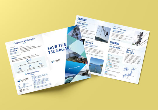 「SAVE THE TSUNAGARI」という力強いメッセージを軸に、ブルーを基調とした配色は、見る人にプロフェッショナルとしての誇りと誠実さを感じさせます。